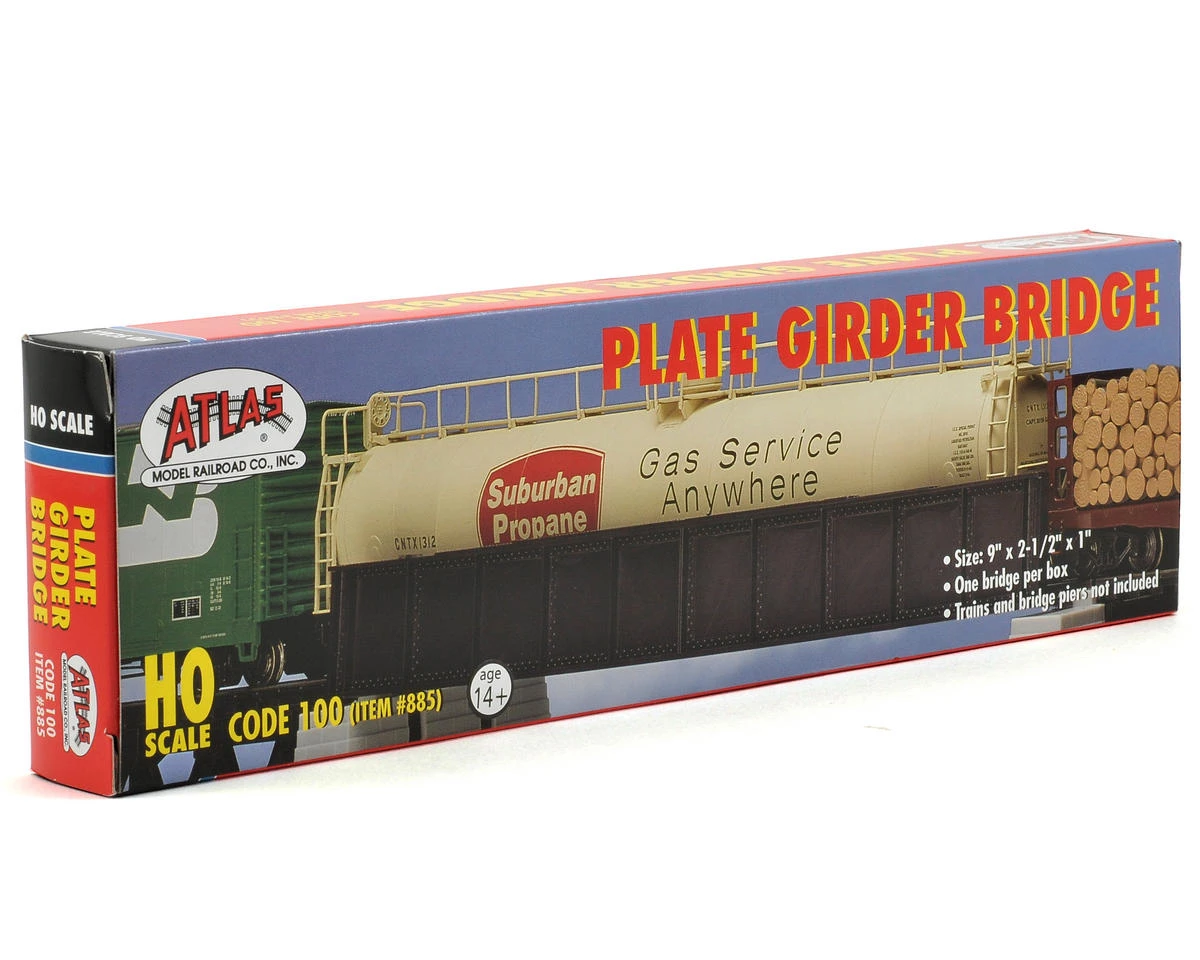This is a Atlas Model Railroad HO-Gauge Code 100 Snap-Track Plate Girder Bridge. Add this bridge to your layout for an impressive and realistic looking multi-span structure. AtlasSnap-Track can be snapped together for quick assembly and easy layoutmodification.