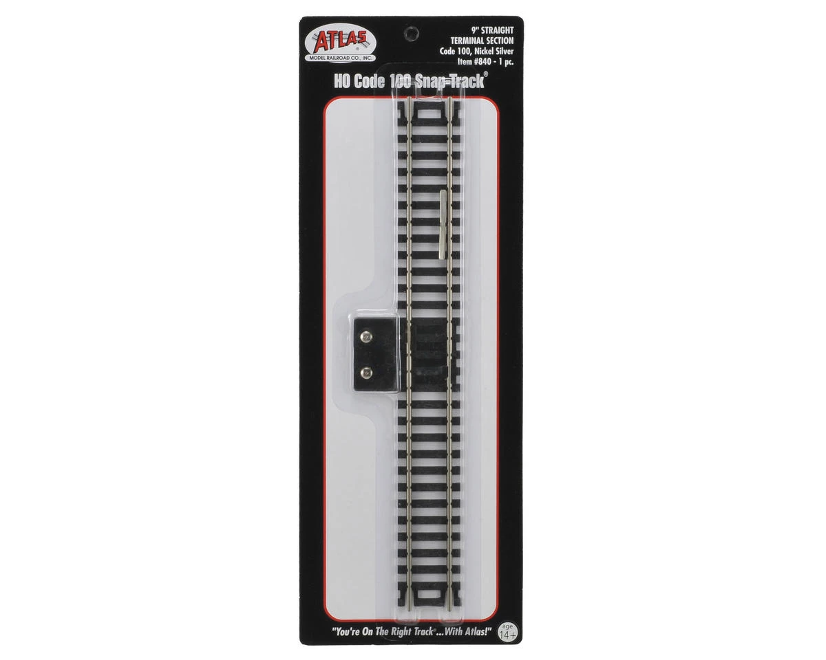 This is a Atlas Model Railroad HO-Gauge Code 100 Snap-Track 9″ Straight with Terminal.