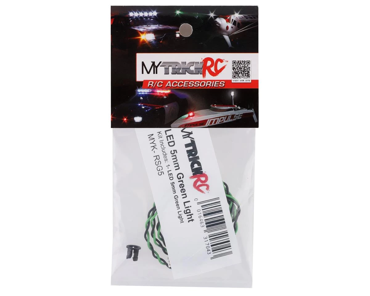 The MyTrickRC 5mm LED string is a single Green 5mm LED on a high quality 16″ cable, and is ideal for use on 1/10th vehicles. The super bright LED has been carefully chosen for optimum brightness, performance, and durability. Also, the twisted wires allow for an easier and cleaner install.