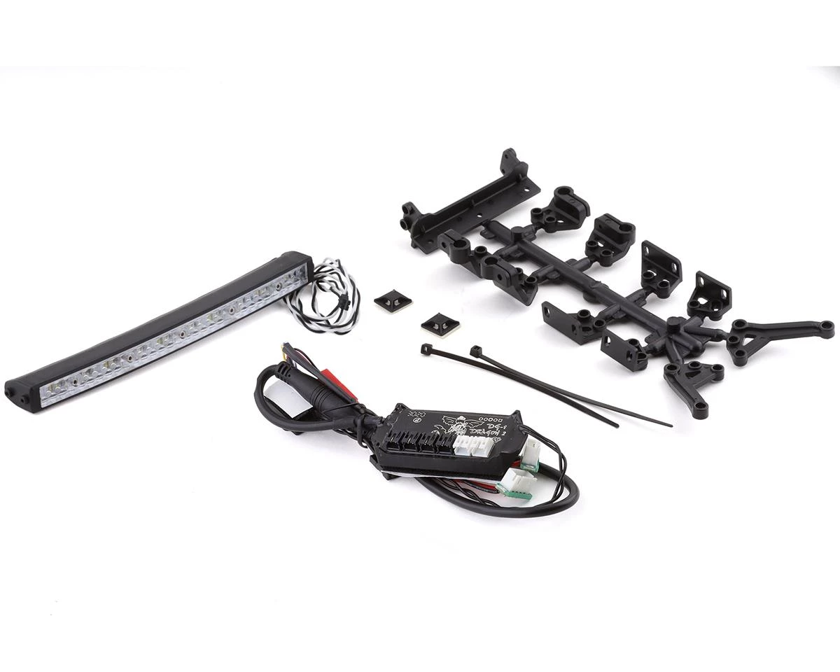 The MyTrickRC Attack Off Road 150 Light Kit is a High Power, Remotely Controllable Adjustable Brightness RC Light System with 5″ Light Bar. This Plug and Play system is Simple to Install, Waterproof, and ready to take a beating on the Trail or on your Basher. With Remote and Manual Adjustable Brightness the Attack Off Road 160 Kit lets you manage your battery usage, and makes it WAY easier to get pictures of your Truck.