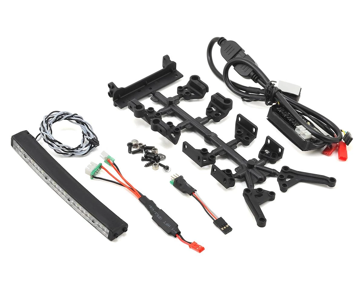 The MyTrickRC Attack Off Road 850 Series is a complete off road package. This high power 3S ready kit includes a waterproof 5″ light bar, headlights, red and yellow 3mm LEDs, all controlled from the 6 port DG-1 Dragon controller. Plus, if you have an open switch on your transmitter, the system can be plugged into an open receiver port and controlled directly from the transmitter!